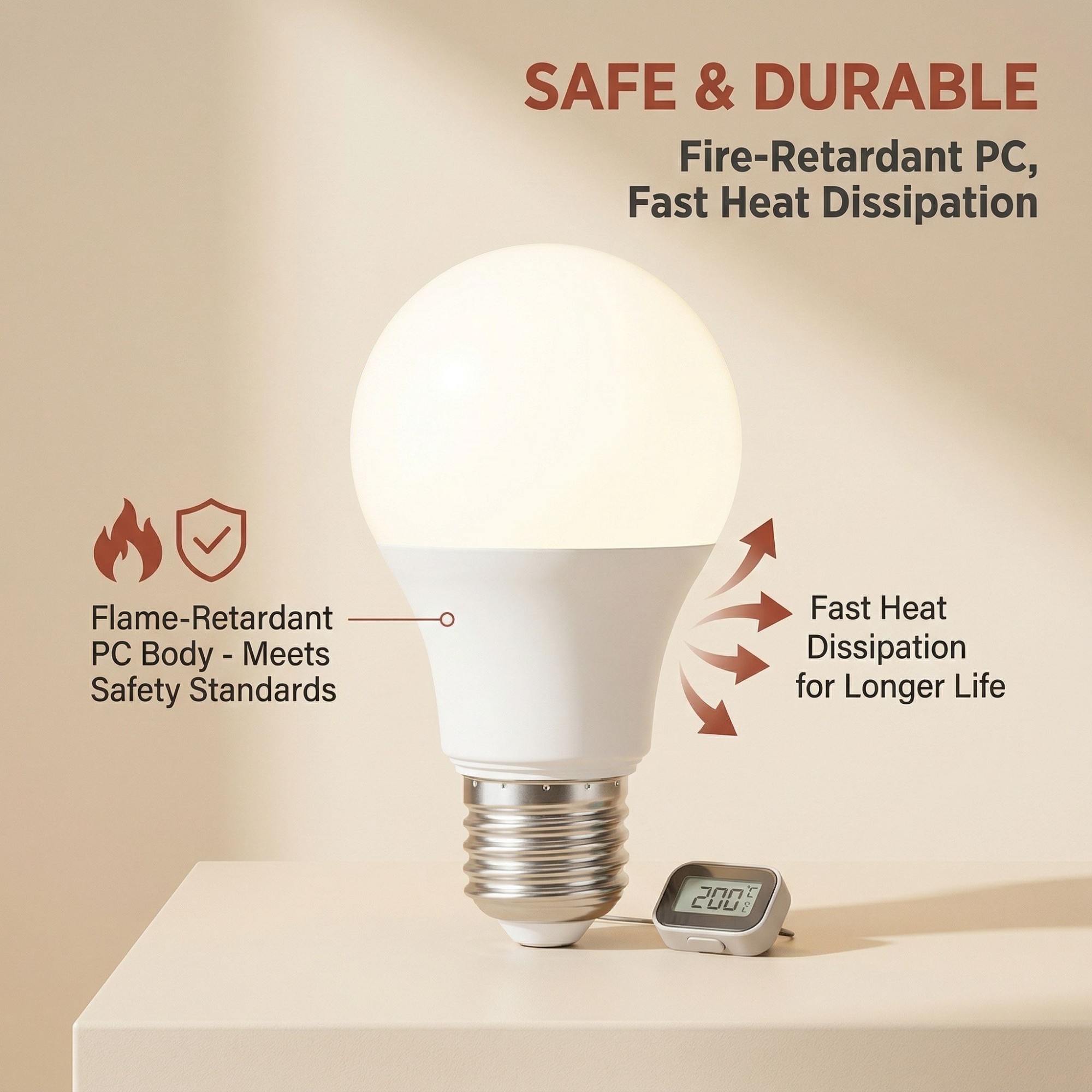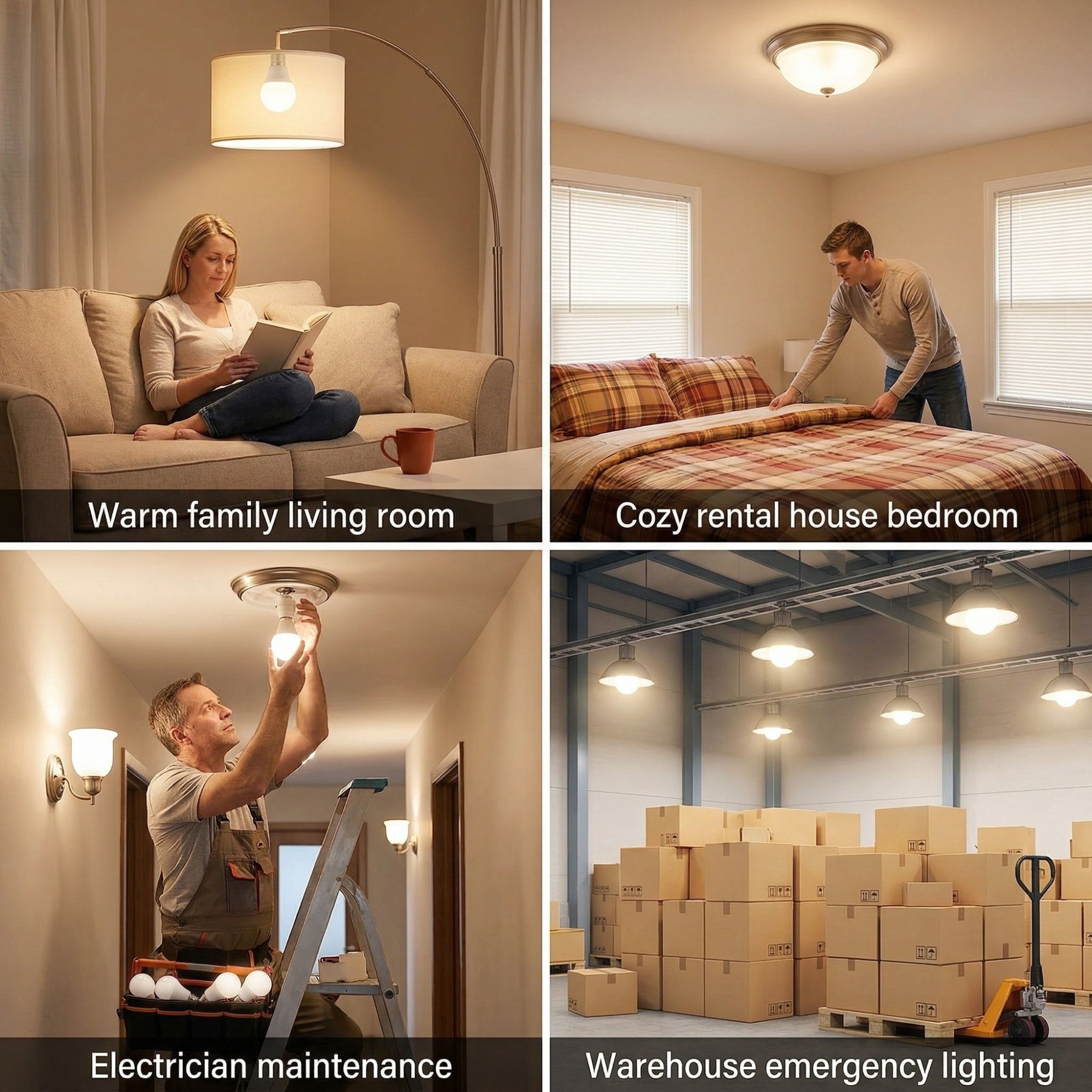 LED Energy - Saving Bulb E27 Screw Milk White Frosted PC Flame - Retardant Long - Lasting for Warehouse Emergency Lighting